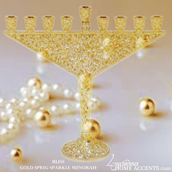 The Bliss Sprig Gold and Crystal Menorah will stand out in any home decor. You will not be able to take your eyes off of it.