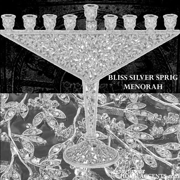 The Bliss Sprig Silver and Crystal Menorah will stand out in any home decor. You will not be able to take your eyes off of it.