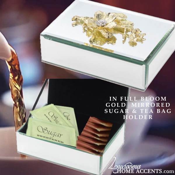 In Full Bloom Gold Mirrored Sugar and Tea Bag Holder