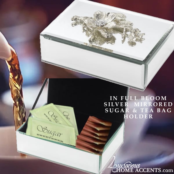 In Full Bloom Silver Mirrored Sugar and Tea Bag Holder