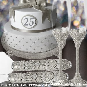 Bliss Fleur Silver Champagne Flutes and Cake Cutting Set $550.00