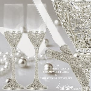 BLOOM Ivory Swarovski Crystal Flutes and Cake Server Set $275.00