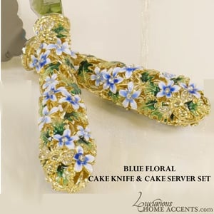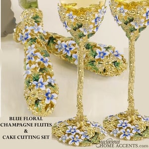Blue Floral Champagne Flutes and Cake Cutting Set $325.00