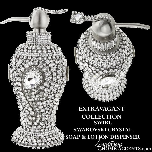 The Swirl Swarovski Crystal Soap or Lotion Dispenser is part of the Extravagant Collection. Magnificent and practical for any Bath or Vanity.